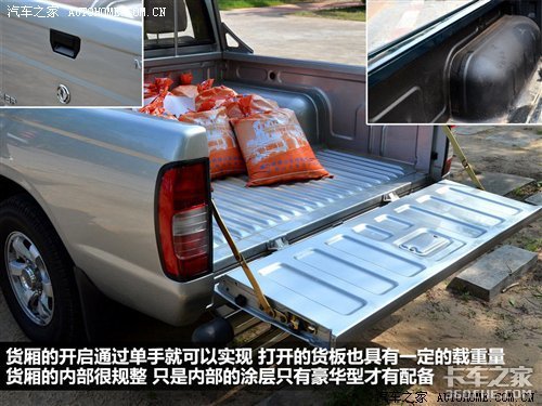 车尾的设计非常朴素,没有任何多余的装饰,所有设计都是以实用为出发点,增加的保险杠也同样具有提升安全的实用性,而视觉上增加的厚重感只是额外带来的。尾厢的开启单手就可以完成操作,货厢内部很规整,我们试驾的这款是标准型,而豪华型的货厢内部增加了表面的图层,除了视觉上更加有质感,也避免了放置物品时划伤车漆。对于这项具有很高实用性的配置,如果是标准配备就更好了。
