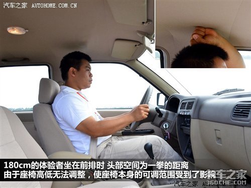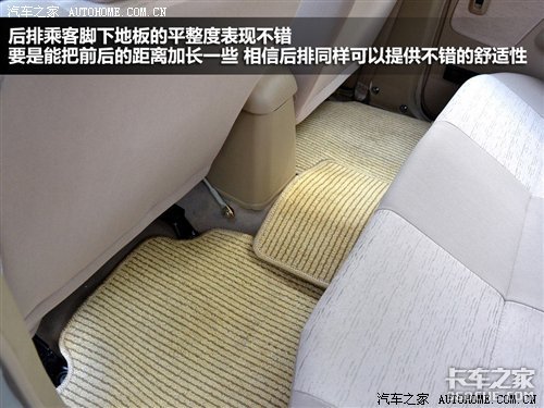 空间方面,180cm的体验者坐在前排,头部空间可以达到一拳的距离,当坐到后排时,由于受到车厢的影响,腿部空间已经没有余量了,而且较高的地板也无法让后排乘客乘坐的很舒适。对于这款车型的后排座椅,应该利用率不会太高,毕竟购买这款车的消费者更多的还是用它来拉货,而载人则成了它的次要工作。