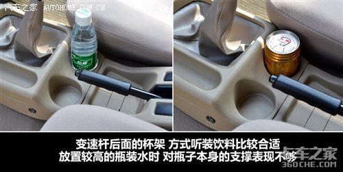 锐骐ZD30在储物格方面的表现,还是比较令人满意的,车门、中控面板上和变速杆前后都设计了储物格,拿取时很顺手。只是杯架的深度比较有限,放置听装饮料显得很稳当,而当放置较高的瓶装水时,就不太合适了。对于这方面的不足,我觉得如果可以在车门上增加杯架的设计一定会提升不小的实用性。