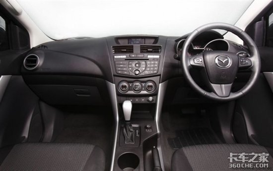 内饰方面,BT-50大部分由简单的线条构成,但是多功能方向盘和中控台布局的各种按钮还是赋予了BT-50十分丰富的功能,并且操作起来也十分方便。四驱和高速低速四驱之间的切换只需要简单的旋转按钮就可以完成。