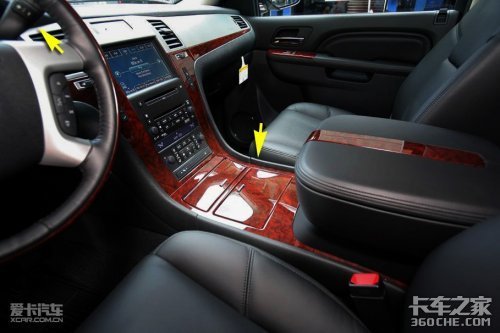 凯雷德EXT采用6速手自一体变速箱,有些特别的是它的换挡杆位于方向盘后方,而扶手箱前的位置被设计成了两个储物盒。这款车型还配备了定速巡航功能,在满是FREE WAY的美国非常实用。