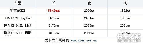 尽管它也是身形巨大的“怪兽”级车型,但凯雷德EXT在我们介绍的车型中只能算作中等尺寸。它的车身长度达到5649mm,但宽度却没有猛禽那么夸张,仅有2009mm。相对紧凑的车身使凯雷德EXT能够更加适应城市中的路况。