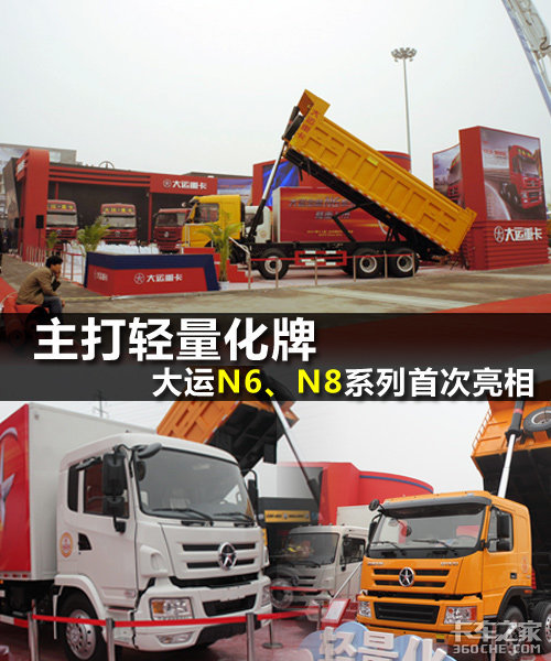 来卡车之家App【卡车之家 原创】2012年4月23日,在北京国际车展上,大运重卡推出了3款N8车系轻量化重卡,以及两款N6车系中重卡车型。这也证明了大运重卡在原有车型的基础上,进一步拓宽了自己的生产能力。