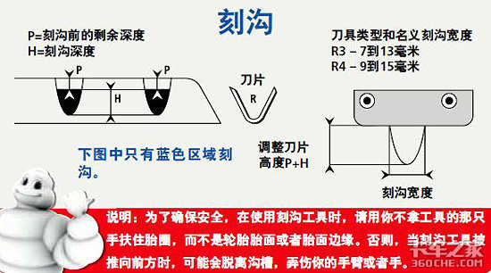 3、按照米其林刻沟手册中的描述,确认推荐的刻沟花纹、刻沟深度和刻沟工具刀。