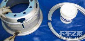 5、将轮辋放在干净的地板上,润滑胎圈座区域。同时还要将安装润滑剂涂抹在轮胎胎圈和垫带的外侧。