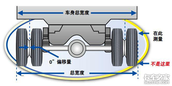 当安装较大的轮胎时,车辆两侧轮胎之间的整体宽度将增加,增加量是外侧轮胎横截面增加值的一半以和每条外侧轮辋偏距量增加值数值。