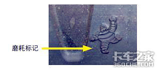 磨耗标记:米其林卡车轮胎的胎面沟槽中带有“磨耗标记”,当胎面橡胶厚度仅有1.6毫米或者更少时,这个标记将显现出来。这个标记是一个米其林轮胎先生的图形,位于胎侧上部。胎面花纹深度不应该从磨损标记上测量。当胎面花纹磨损到与磨损标记一样高度时(正常磨损或者不规则磨损),就不应该继续使用这条轮胎。