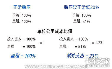 米其林对实际运行中的车辆进行了胎压监测。结果发现了两个明显的趋势:前轴胎压不足,而驱动轴胎压过大。
