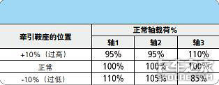 牵引鞍座过高:将降低拖车轴的负载