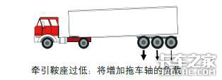 牵引鞍座过低:将增加拖车轴的负载