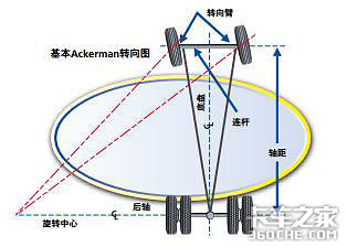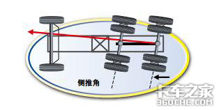 车辆几何中心线与车轴指向方向形成了一个推力角。在理想状态下,这个角度应该为零值,车后中心线与几何中心线垂直。不过,偏离这个数值将增加导致车辆无法直线行驶,轮胎“后轮跑偏”并摩擦。