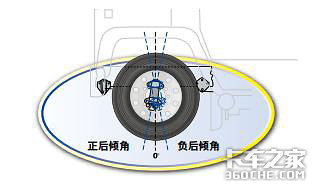 超过车辆制造商的技术规格的过大外倾角,导致过大的轮胎磨损,尤其是对于那些地区性运营的车队来说。后倾角可以用垫片方式调整。不推荐仅调整一侧。两侧的后倾角应该相等,或者不超过半度的偏差。在通常情况下,带有最小的正后倾角的车辆将被拉向侧面。现代车辆上的典型数值是2到5度的正后倾角。