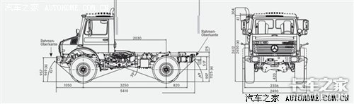 乌尼莫克U4000可以手动选择四驱或者两驱的驱动形式,同时前后桥都可实现100%的锁止。仪表板上共有三个不同的开关,不同的路况则可选择不同的驱动模式,除了0是后桥驱动模式外,位置一时为全轮驱动模式,位置二是通过气动控制在行驶过程中将前后桥差速锁锁止。