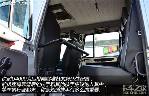 乌尼莫克U4000采用全钢驾驶室,有两/三座单排驾驶室或6座双排座驾驶室可供选择,这台U4000采用双排驾驶室。只有前排驾驶座上设置了气悬减震座椅,而其它座位都没有减震功能。不过,U4000倒是为后排乘客提供两种模式的把手,足以说明它常出现的地方肯定不是为舒适而生。而收音机等则放置在车辆的上方位置。