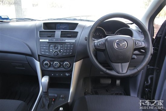 内饰方面,BT-50的做工达到了大多数轿车的水准,中控台材质很软,手感很好,各个按键的布局也是简洁合理,非常容易上手。配置方面,我们所试驾的这款BT-50配备了五寸显示屏、蓝牙电话系统、双区自动空调、17寸合金轮圈、六声道影音系统等。另外马自达还为BT-50提供了一系列主动和被动安全系统,包括六安全气囊、动态稳定性控制系统、牵引力控制系统、坡起/坡降控制系统等,这款皮卡在A-NCAP碰撞测试中获得了五星安全评价。