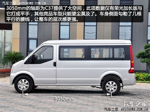 基本参数:东风小康C37的外形尺寸为4500x1680x1960mm,轴距为3050mm,与其它竞品车型相比,东风小康C37应该算是微客产品中的大块头。