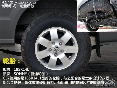 配置方面:东风小康C37全系标配185R14LT宽胎、铝合金轮毂、助力转向、前排电动车窗及儿童安全锁。此外东风小康的高配车型还配有皮质座椅和可视雷达,并且还可以选装ABS和驾驶位安全气囊。