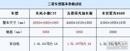 在这个价格区间内,东风小康C37的主要竞争对手是五菱荣光加长版和长安星光4500。在车身尺寸方面,东风小康C37具有绝对的优势,三围尺寸均超过竞争对手,轴距方面与五菱荣光加长版一样,都属于同级别车型中最大的。动力方面,五菱荣光加长版1.5L的发动机略占优势,另外五菱汽车在微客市场的口碑也略胜一筹。