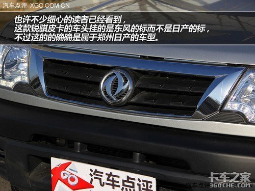 也许不少细心的读者已经看到,这款锐骐皮卡的车头挂的是东风的标,而不是日产的标,不过这的的确确是属于郑州日产的车型。