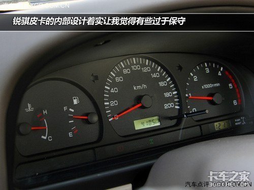 对于如此一款以实用性为主的车来说,车内的设计并不是锐骐皮卡所擅长的地方。打开车门,虽然你看不到什么真皮座椅以及各类电子系统,不过务实而简洁的车内空间让你心里能清楚的明白,这些起码对得起10.38万的官方售价。