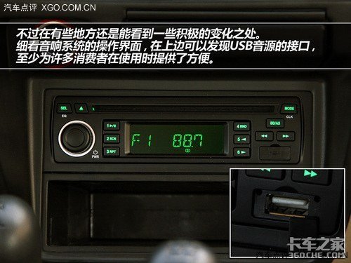 老实说,锐骐皮卡的内部设计着实让我觉得有些过于保守。尽管并不奢求有什么高端配置出现,但也应该设计得再年轻化一些,有些过于局限受众人群了。不过在有些地方还是能看到一些积极的变化之处。细看音响系统的操作界面,在上边可以发现USB音源的接口,至少为许多消费者在使用时提供了方便。