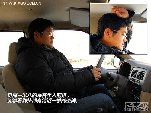 在乘坐空间方面,锐骐皮卡也还是表现不错的,至少实际演示还是说得过去的。身高一米八的乘客坐入前排,能够看到头部有将近一拳的空间;当坐入后排后,头部上方有三指的空间,只是有点委屈了双腿,正好贴着前排座椅的椅背。