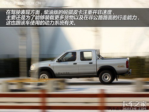 在驾驶表现方面,这款柴油版的锐骐皮卡注重并非速度,主要还是为了能够装载更多货物以及在非公路路面的行走能力,这也跟该车使用的动力系统有关。
