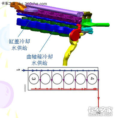 曲轴箱同缸盖独立的冷却循环系统。