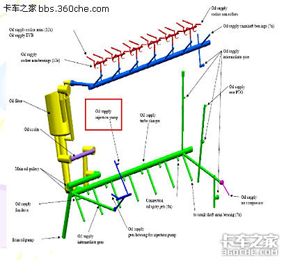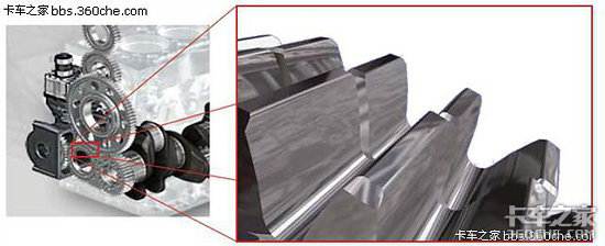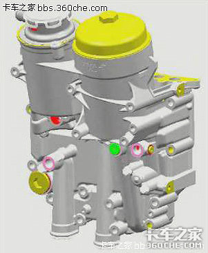 采用了转子机油泵经 过机油模块冷却和过滤后,同时分配到曲轴箱和气缸盖等需要润滑的部位,这种结构确保了机油压力的稳定。