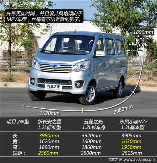 可能大多数人都见过,甚至是开过长安之星或者长安之星2代,对它们的外形大家已经十分了解。你见到新长安之星的时候,却丝毫找不到前辈们的影子。外形更加时尚,并且设计风格倾向于MPV车型。据厂家介绍,长安之星和长安之星2将会继续生产,以后我们将会看到这祖孙三代共同销售的场景了。