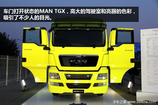 在活动现场,除了大众旗下各品牌的乘用车悉数亮相外,一台高大威猛颜色亮丽的MAN TGX 28.480牵引车更是吸引了不少人的目光。