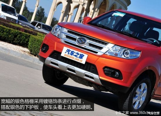 外观方面,黄海N1整体的造型较为饱满,搭配橘色的车身,在色彩方面也体现出些许时尚气息。车头处采用银色的宽幅进气格栅,同时配以银色的下护板,呈现出较强的力量感。