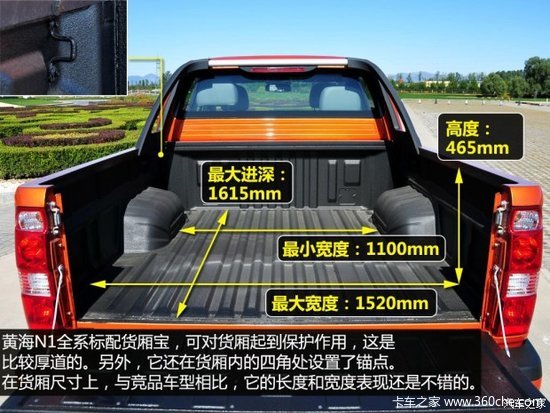 黄海N1的乘坐空间表现整体来说还是可以让人接受的。不过第二排座椅未能配备安全带有些说不过去,毕竟乘客的安全性是最重要的。像风骏5欧洲版、恒天途腾T3等皮卡车型都已将安全带设为标配。