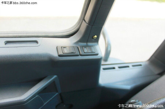 重汽M5G车型驾驶室采用灰色系为主色调,在驾驶室车门内饰板上,还有织物材料作为装饰,不过那个车辆音响的喇叭,太山寨了。
