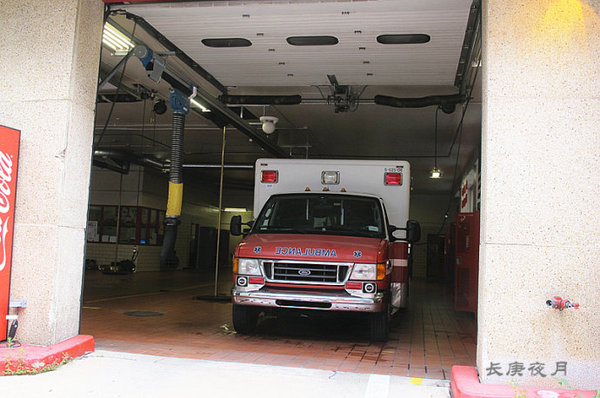 在美国一般情况下是要求救护车与消防车同时在5分钟之内抵达事故地点的,所以每个消防站都配好了救护车.