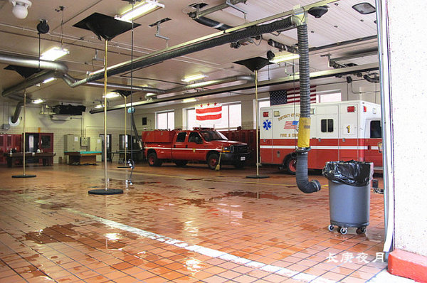 上图可见有四个快速通道可让消防员快速从二楼下到云梯车的两边。