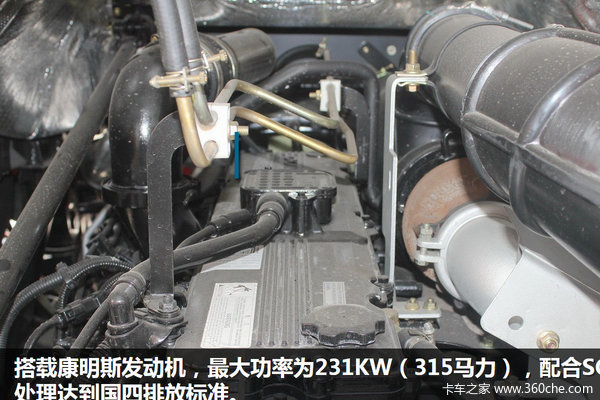 此车搭载的依然是康明斯发动机,发动机型号为ISL9.5-315E40A,最大功率231KW(315马力),采用高压共轨+SCR后处理达到国四排放标准。配上法士特12JSD160TA变速箱,保证了时效性。