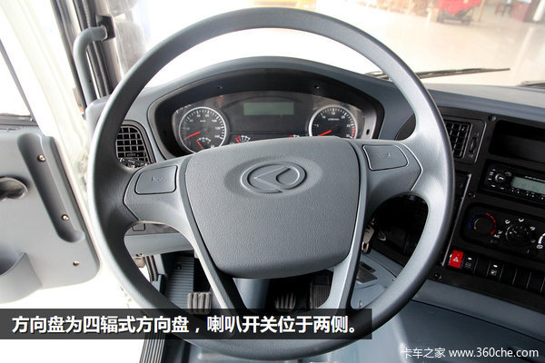 该车主驾驶室座椅采用了气囊座椅,诸如定速巡航系统、大灯高度可调装置等配置该车也都有配备。四辐式的方向盘可以调整,但是调整的时候,需要一手拉这个方向盘调整锁止开关,一手对方向盘进行调整。