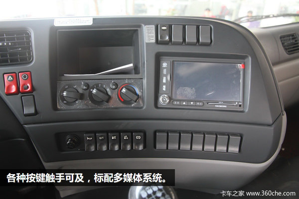 不管是外形还是内饰,这台装配420马力的天龙都是和其他马力段的天龙都是一样的,驾驶室内部依然是浅色调为主,中控台上的各种按键触手可及,十分方便。目前天龙全系车型都已经标配了车辆行驶记录仪。与其说是一台多媒体播放器,还不如说是一套具有车辆行驶记录仪功能的多媒体系统。