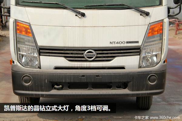 前脸风格干练,晶钻立式大灯,角度3挡可调,大灯侧面带有扰流槽,可避免侧门泥沙附着,这在轻卡上并不多见。只是后视镜略显简单,但配有照地镜,方便驾驶员观察路面。