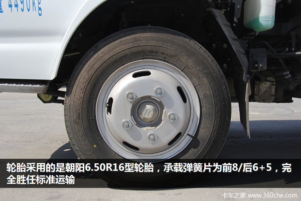 轮胎则采用的是朝阳6.50R16型轮胎,承载弹簧片数则为前8/后6+5,可以完全胜任标准运输。