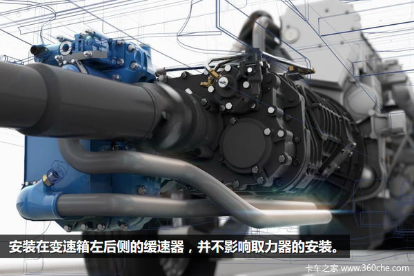 并且并联安装的安装的方式并不影响重汽T7H的底盘布局和整车重量的控制,取力器的安装位置空间充足。