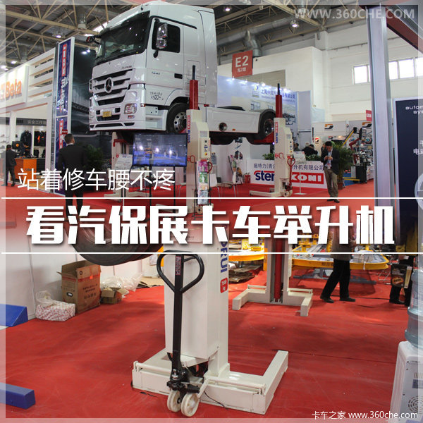 说明自己的展品是干啥的,最好的办法就是让它去干。施特力(青岛)中兴举升机有限公司的展台,就是这样干的。他们用4台Stertil-Koni汽车举升机,将一辆奔驰Actros牵引车举得老高,在这个以乘用车保修设备为主的展厅中很显眼。