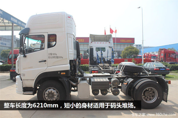 整车长度为6210mm,短小的身材适用于码头堆场,物流集散地及城区道路这些路况复杂的地域使用。前桥至驱动桥轴距为3600MM,和以前拍摄的T5G车型相同,车身两侧没有配备侧裙板或防护栏。