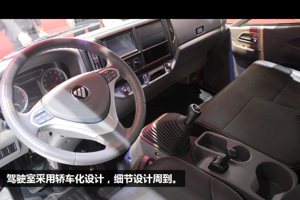 驾驶室内对仪表盘、座椅、中控台进行人性化设计,内饰整体以深色系色调为主。