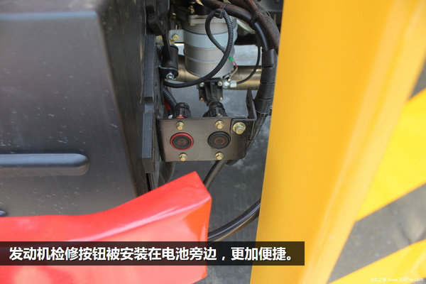 发动机检修开关被安装在了电池旁边,方便检修发动机的时候更加方便。