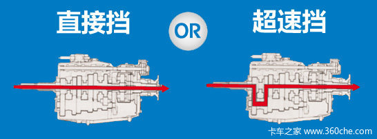 超速挡变速箱,有着更高的传动比,起步能力和爬坡能力比较强,在山区行驶时变速箱润滑液温度比较低。这些因素对提高车辆总效率的贡献不容忽视。另外装配超速挡变速箱的卡车对不同路况的适应性更好,在二手车转售时比直接挡车型更好卖一些。