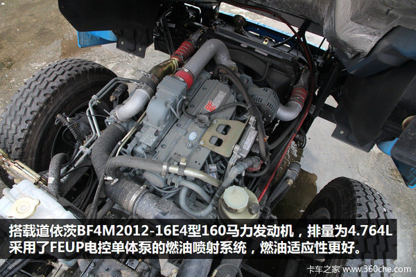 再来看看动力方面,搭载大柴道依茨BF4M2012-16E4型160马力发动机,排量为4.04L,采用了FEUP电控单体泵的燃油喷射系统,燃油适应性更好,结合SCR后处理技术达到国四排放标准。