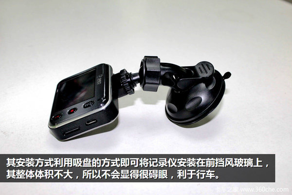 其安装方式利用吸盘的方式即可将记录仪安装在前挡风玻璃上,其整体体积不大,吸附力相对较差,容易掉落,应该改进。