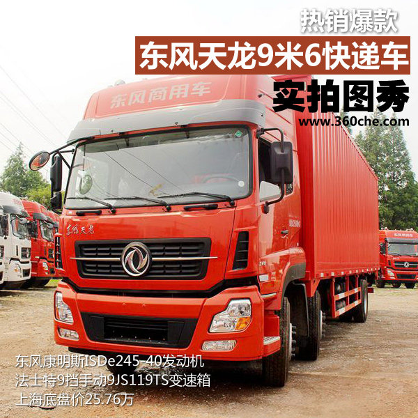 来卡车之家App【卡车之家 原创】2015年夏至已至,令国内各商用车厂商忧心忡忡的是,随着气温的不断攀升,国内商用车市场的寒意却并未褪去。为了改变销售惨淡的境况,各大商用车厂商纷纷将目光转向快递物流运输行业。近日小编走访上海维宝汽车销售有限公司,通过副总经理温昆山先生介绍,了解到目前东风商用车在上海区域的主推车型为东风天龙9米6 6x2厢式载货车,市场定位于快递物流高速公路运输,目前该款车型的底盘报价为25.76万。